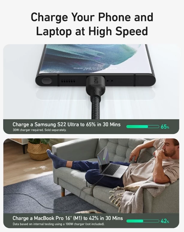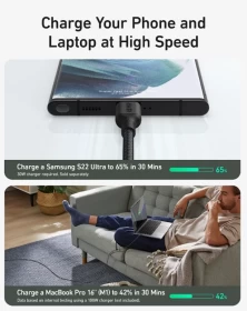 كابل 544 يو اس بي – سي إلى يو اس بي – سي من أنكر، قوة 240واط، بطول 1.8 متر، A80F6H11– أسود
