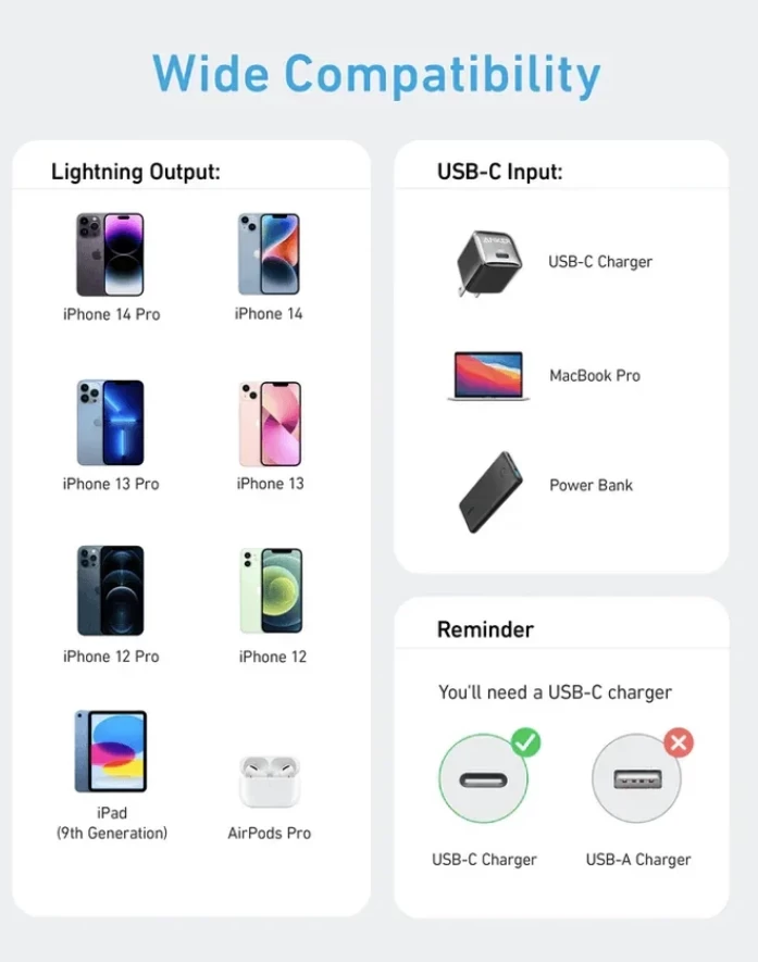 • معتمد من MFi للتوافق الخالي من العيوب مع أجهزة النوع C.