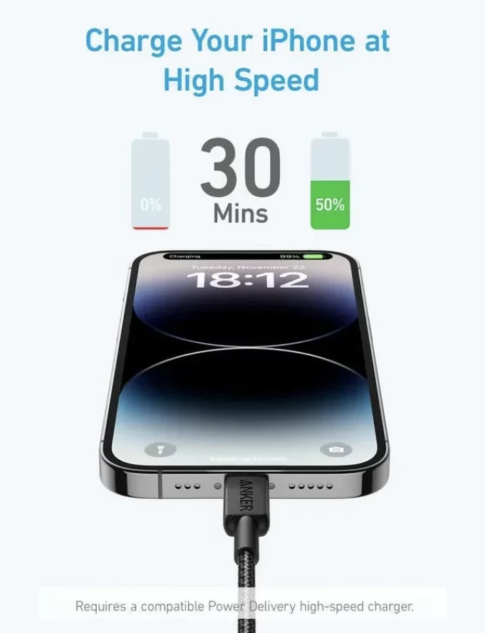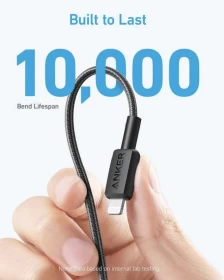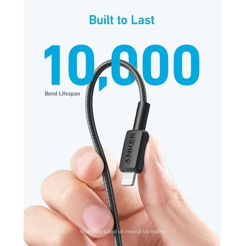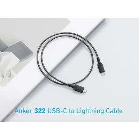 كابل أنكر 322 من USB-C إلى Lightning (مضفر بطول 3 أقدام) أسود - 0.90 متر