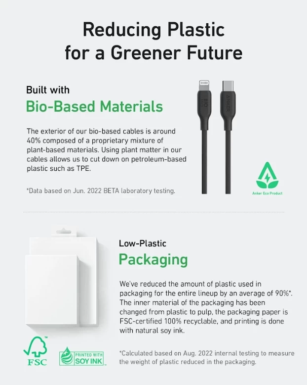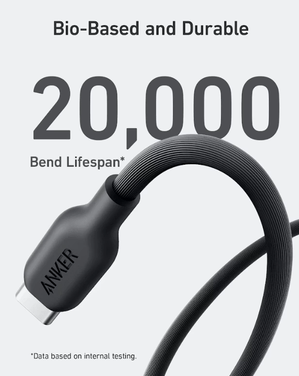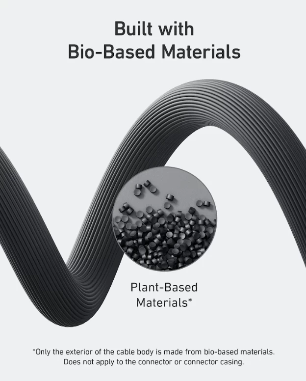 • يتكون الجزء الخارجي من الكابلات القائمة على أساس حيوي بنسبة 40 ٪ تقريبًا من خليط خاص من المواد النباتية.