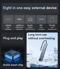 HB27 8 IN 1 USB C HUB | PD 100W For Laptop Tablet Mobile Phone Support