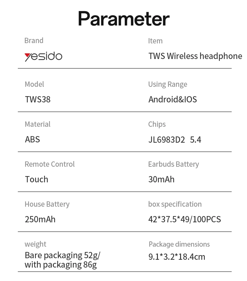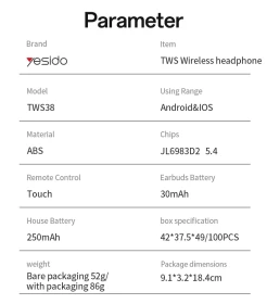 BT NAME: Yesido TWS38