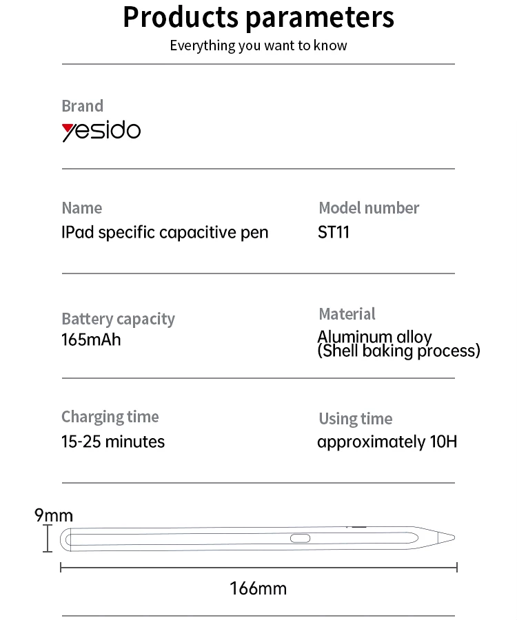 ST11 iPad Active Stylus Pen | Aluminium iPad Productivity Touch Capacitive Pen For iPad.